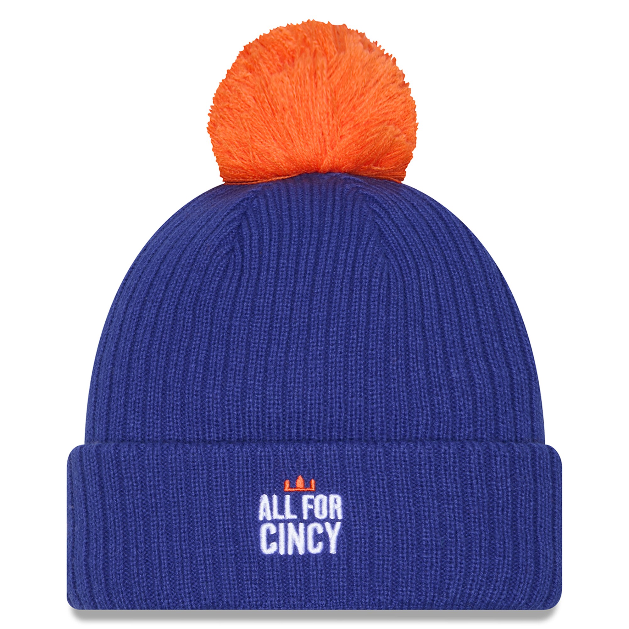 Home / Shop / FC Cincinnati / Men’s FC Cincinnati New Era Royal 2025 Jersey Hook Cuffed Knit Hat with Pom