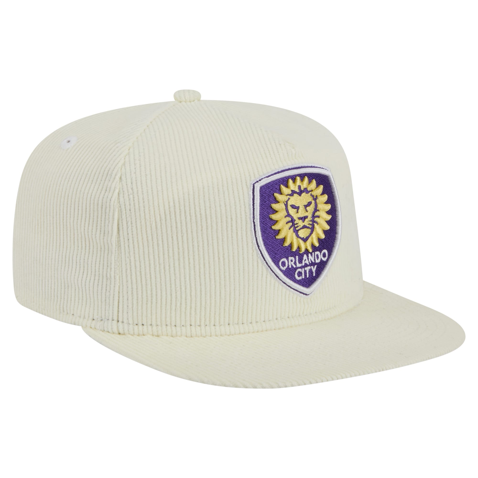 Hit the links in style with this Orlando City SC 2025 Kickoff Snapback Golfer Hat from New Era. This Orlando City SC hat features a unique five-panel construction with a pinched A-frame design on the front for a modern take on a classic look. The corduroy fabric adds a vintage feel, while the embroidered Orlando City SC logo on the front and MLS shield on the back proudly display your team pride.