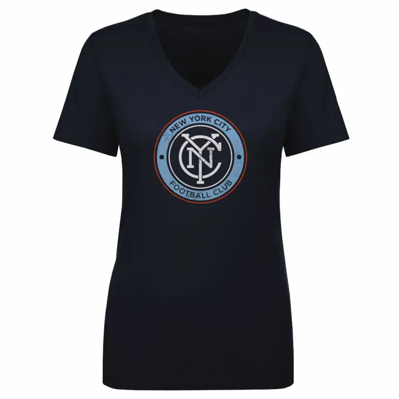 New York City FC Vintage Primary Logo WHT – Women’s V-Neck T-Shirt